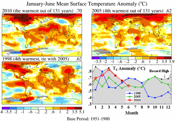 NASA: First half of 2010 breaks the thermometer — despite “recent minimum of solar irradiance” « Climate Progress